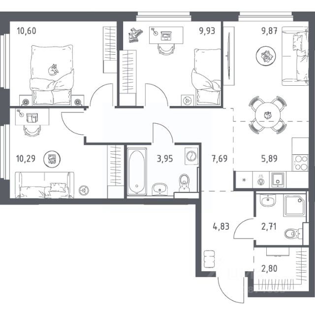 Продаётся 4-комнатная квартира в строящемся доме (Дом 1.1), срок сдачи: II-кв. 2028, общей площадью 68.56 кв.м., на 11 этаже. Чувствовать гордость, когда любимая футбольная команда забивает гол, и с удовольствием спешить после работы на тренировку по мини-футболу или теннису. Так выглядит домашняя атмосфера в "Квартале Чехова", который находится в Ленинском районе. Здесь каждый день станет ценным экспонатом в вашей коллекции впечатлений. В будущем жилой комплекс станет частью большого проекта "Донские Легенды", где кварталы будут носить имена выдающихся людей. Например, "Кварталу Чехова" подарил название великий русский писатель и автор "Вишневого сада" и "Трех сестер". Как и для будущих жителей проекта, Ростовская область была для классика родным домом - здесь он родился и провел юность. Живописное окружение Жить в "Квартале Чехова" - возможность создавать активную жизнь, где есть место спорту и положительным эмоциям. Рядом с проектом находится спортивный комплекс "Гребной канал Дон", где можно выбрать занятия по душе: от баскетбола, настольного тенниса и мини-футбола до катания на роликах и бега. Не пропускаете ни одной игры желто-синих? Недалеко от квартала - стадион "Ростов Арена". Можно прогуляться в ожидании футбольного матча или проехать на авто всего 5 минут. Побродить по благоустроенной набережной, повеселиться всей семьей в аквапарке, а потом подкрепиться мороженым в кафе или ресторане с видом на воду можно в Левобережном парке или на левом берегу реки. Такси довезет вас до него за 5 минут. За порцией ярких эмоций приходите в выставочный центр "Арена Экспо". От соревнований по художественной гимнастике и единоборствам, концертов, показов мод и фестивалей вас отделяет всего один пешеходный переход через дорогу. Провести вечер у большого экрана с ведерком попкорна - легко. Рядом с кварталом находится торговый центр "Мегамаг". Здесь же можно запастись продуктами для семейного праздника или пополнить свой гардероб. Транспортная доступность В квартале вы будете успевать переделать все важные дела за день, ведь сможете быстро добраться до любой точки города. Проект находится в Ленинском районе, а рядом располагаются Восточное шоссе и улица Пойменная. Попасть в центр города на деловую встречу в бизнес-центре, ужин в ресторане или концерт легко - всего 10 минут на машине. Столько же времени уйдет на поездку до Большой Садовой улицы. За 3 минуты на авто вы доберетесь до Ворошиловского моста, а в 4 минутах езды находится Темерницкий мост. Если не хочется садиться за руль, поймайте маршрутку или садитесь на автобус - остановки рядом с домом. Инфраструктура Не тратить время на поездки по важным делам - в квартале это может стать вашим жизненным кредо. Ваше утро будет начинаться позже, ведь прогулка с малышом до одного из 3 ближайших детских садов будет занимать всего несколько минут. А школьники самостоятельно смогут ходить на уроки - рядом есть школа для 2 450 учеников. Там же появится конгресс-холл, где будут проходить концерты, в