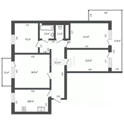 4-комнатная квартира 123,8 м²