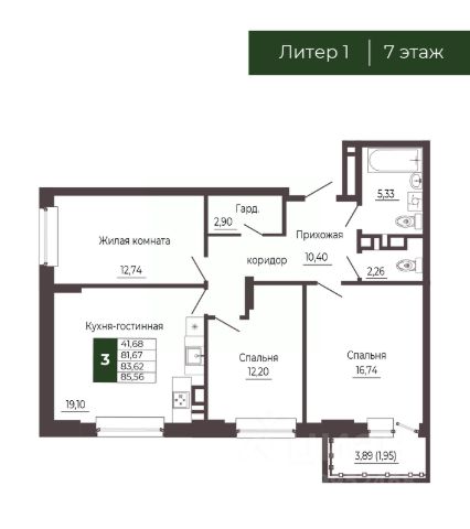 4-комнатная квартира 123,8 м²