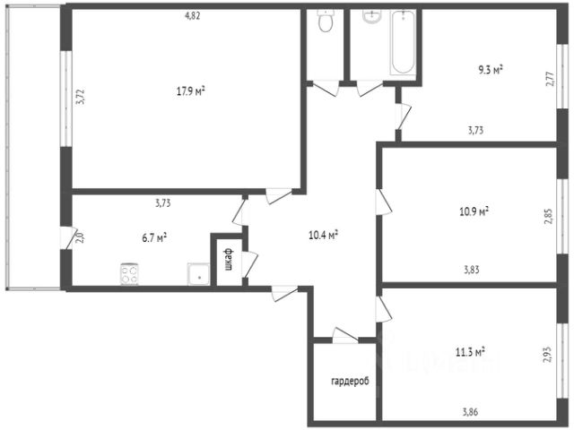 Арт. 106358701 Продаётся собственниками просторная квартира в центре нового города. Квартира состоит из двух объединённых квартир на площадке (2-х и 3-х комнатная) с одним входом. Всего 6 комнат. Перепланировка узаконена. Зал (состоит из 2-х объединённых комнат) — 32,6 м2. Выход на балкон. Взрослая спальня — 17,1 м2. Детская спальня 1 — 13 м2. Детская спальня 2 — 12,6 м2. Выход на лоджию. Гардеробная — 8,2 м2. Кухня — 9,4 м2. Ванная комната с санузлом в зале — 7,1 м2. Раздельный санузел и душевая в коридоре — 1,3+2,5 м2. Выполненные на заказ импортные деревянные окна и подоконники со стеклопакетами во всех комнатах, кроме кухни и гардеробной. Выполненные на заказ двери из дерева во всех комнатах. На полу паркет во всех комнатах, кроме кухни и ванных комнат. В зале выполнен дизайнерский ремонт. Часть мебели выполнена на заказ. Балкон и лоджия застеклены. Мебель и техника остаются (кроме телевизоров, холодильника, стульев в зале). Кухня остаётся. Развитая инфраструктура: рядом магазины, школа, детский сад. Хорошая транспортная доступность. Сквер поблизости. 2 взрослых и 2 несовершеннолетних собственника. Вопросы продажи с опекой урегулированы. Прописано 4 человека, в процессе сделки все будут выписаны. Свободная продажа.