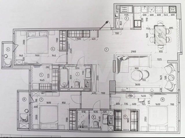 3 изoлированные комнаты + просторная гостиная.