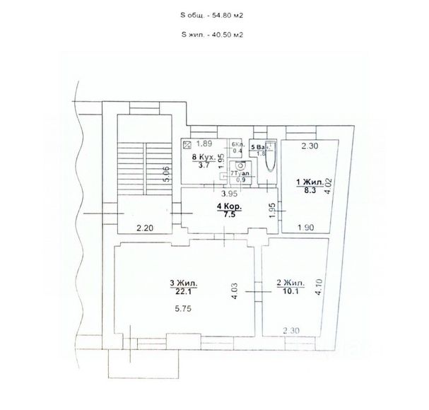 Общая площадь: 53 кв.м.
