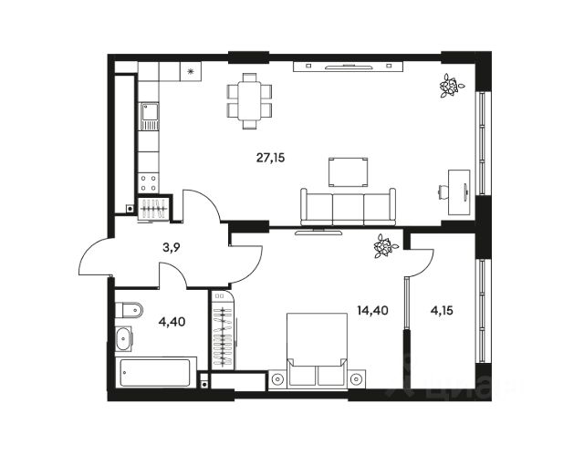 • Улучшенная черновая отделка: квартира сдается со стяжкой пола и межкомнатными перегородками, с шумо- и гидроизоляцией