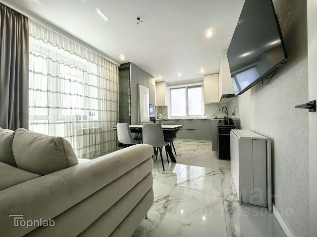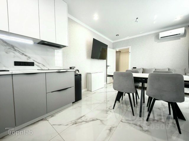 Квартира выполнена с дизайнерским ремонтом, где особое внимание уделено качеству материалов и функциональности. Все поверхности — стены и потолок — обклеены стеклохолстом, а потолки дополнительно оснащены звукоизоляцией, что создает акустический комфорт. Отсутствие порожков делает перемещение по квартире удобным, в том числе для использования робота-пылесоса. Встроенная мебель изготовлена на заказ, а бытовая техника подобрана из премиальных брендов: холодильник LG, духовой шкаф Bosch, индукционная плита Beko, посудомоечная машина, микроволновая печь и стиральная машина. В квартире установлены три телевизора LG, а также бойлер на 100 литров с двумя сухими ТЭНами, обеспечивающий бесперебойное горячее водоснабжение.