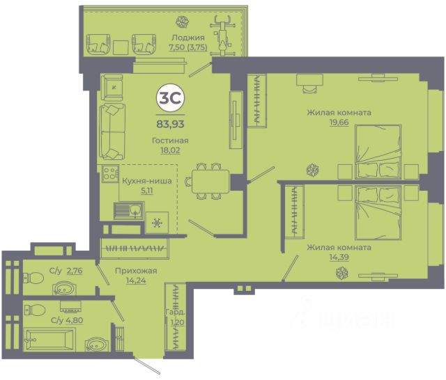 95 614 ₽/м²
