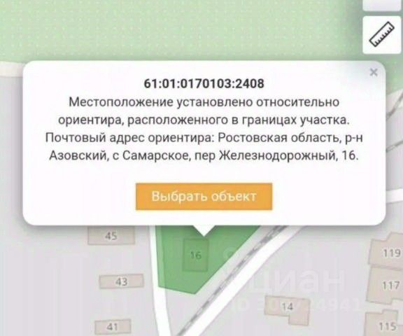 В ПРОДАЖЕ ЗЕМЕЛЬНЫЙ УЧАСТОК с. Самарское Общая площадь земельного участка - 6 соток форма участка - прямоугольная. Тихое место со всей инфраструктурой в шаговой доступности! Рядом есть школы, детские сады, коммерческие объекты. Прилегающая к земельному участку дорога широкая, обеспечивает подъезд к участку круглый год. Не топит, при этом в шаговой доступности р. Кагальник. Коммуникации по меже. Дополнительно оплачивается комиссия с покупателя. Возможно строительство дома под семейную ипотеку. Код пользователя: 186886 Номер в базе: 7764232 Продается участок под дачу в селе Самарское Азовского района.