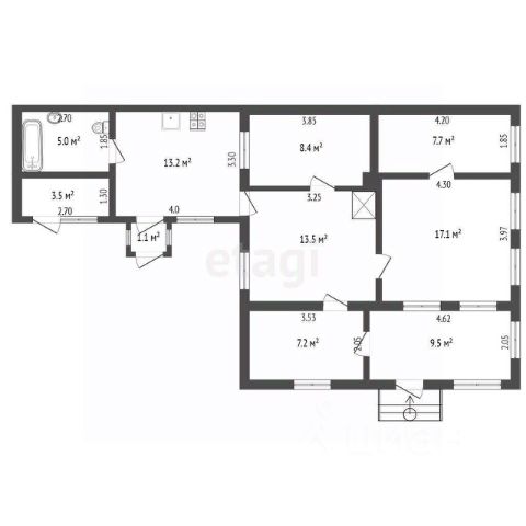 Общая площадь дома 97 кв.м, кухня-гостиная 30 кв.м, две комнаты 24 кв.м и 16 кв.м, санузел 12 кв.м, высота потолков 3 м.