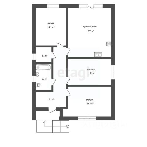 В продаже дом 105 м.кв. на 4 сотках земли от частного строителя (от ИП), это вам позволит купить дом по программе семейная ипотека. Участок ровный, правильной формы. Дом расположен в одном из густо населенных поселков городского типа. С высоко развитой инфраструктурой. Большие Салы. На участке есть все необходимые коммуникации для жизни. Газ - заведен в дом и установлен котел. Вода заведена в дом - скважина. Канализация - септик Свет - заведен в дом. По дому выполнена чистовая отделка, вам останется только положить напольное покрытие, оформить стены и потолок. По полу везде за исключением спален установлены теплые полы. В комнатах радиаторы. Дополнительно оплачивается комиссия с покупателя. Код пользователя: 130062 Номер в базе: 2342394