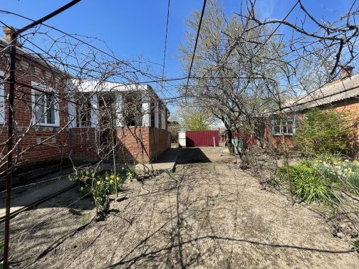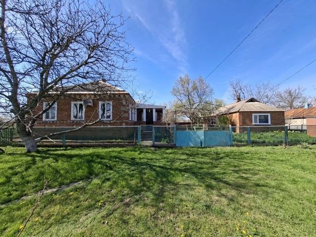 Теплый , уютный кирпичный дом на участке 40 соток . В доме четыре жилых комнаты . Электрическое отопление и две дровяные печки . удобства в доме . На участке летняя кухня , кирпичный гараж , кладовая и прохладный большой погреб . Два кирпичных сарая 70м2 .Через дорогу новая современная школа и детский сад. К дому подведен газ . Фасад участка 45 м в ширину , есть место для постройки еще одного дома рядом. Село граничит с Краснодарским краем и находится у реки Ея которая впадает в Азовскре море до которого 25 км