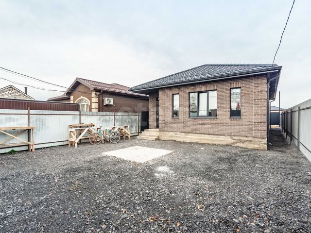 Продаётся кирпичный дом площадью 103 кв.м с газовым отоплением, построенный в 2025 году. Одноэтажное здание расположено на участке 4 сотки, категория земли — ИЖС. В доме четыре комнаты, требуется ремонт. Установлен септик, водоснабжение осуществляется через скважину. На территории имеется просторная терраса. Удобная транспортная доступность благодаря близости остановки общественного транспорта. В шаговой доступности школа. Возможна покупка в ипотеку.