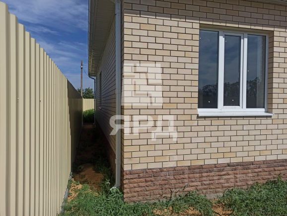 Продается одноэтажный дом общей площадью 100 м2 на участке 8 соток от собственника. Подходит для покупки в ипотеку. Отделка дома предчистовая. Дом облицован керамическим кирпичом, внутренние стены выполнены из качественного газоблока D500. Фундамент ленточный с монолитной железобетонной плитой. Общая толщина наружных стен составляет 45 см., что позволяет обеспечить внутри помещения тепло зимой и прохладу в летний период. Полы дополнительно утеплены под стяжкой пенополистиролом. Металлопластиковые окна установлены по ГОСТУ и изготовлены из 5-ти камерного профиля REXAU с двухкамерным стеклопакетом. Покрытие кровли металлочерепица с полимерным покрытием, толщиной металла 0,5 мм. Функциональной планировкой дома предусмотрены: просторная кухня-гостиная с выходом на большую террасу, три спальни, два санузла, прихожая и котельная. В доме выполнена внутридомовая разводка труб горячего и холодного водоснабжения, в местах водозабора установлены датчики протечки воды. Отопление дома осуществляется газовым котлом посредством стальных панельных радиаторов отопления и водяного теплого пола. Имеется возможность зональное регулирование температуры в отдельных помещениях (в комнатах установлены датчики температуры). Вся сантехника выполнена из качественных и долговечных материалов. Фасадная часть составляет 19 метров.