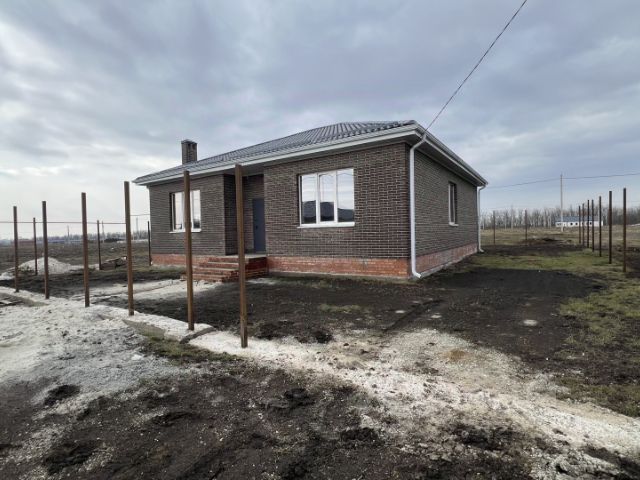 Продается одноэтажный дом общей площадью 100 м2 на участке 9,28 соток (проект Черешневый сад), год постройки 2025. Подходит для взятия в ипотеку. Отделка дома предчистовая. Дом облицован керамическим кирпичом, внутренние стены выполнены из качественного газоблока D500 Главстрой. Фундамент ленточный с монолитной железобетонной плитой. Общая толщина наружных стен составляет 45 см., что позволяет обеспечить внутри помещения тепло зимой и прохладу в летний период. Металлопластиковые окна установлены по ГОСТУ и изготовлены из 5-ти камерного профиля REXAU с двухкамерным стеклопакетом. Покрытие кровли металлочерепица Grand Line с полимерным покрытием Satin, толщиной металла 0,5 мм. Функциональной планировкой дома предусмотрены: просторная кухня-гостиная с выходом на большую террасу, три спальни, два санузла, прихожая и котельная. Центральные коммуникации: электроснабжение 3 фазы 15 кВт, водоснабжение. Выполнена внутридомовая разводка труб горячего и холодного водоснабжения, в местах водозабора установлены датчики протечки воды. Отопление дома осуществляется газовым котлом посредством стальных панельных радиаторов отопления и водяного теплого пола. Имеется возможность зональное регулирование температуры в отдельных помещениях (в комнатах установлены датчики температуры). Вся сантехника выполнена из качественных и долговечных материалов. Земельный участок огорожен по периметру, внутри двора имеется сад, фасадная часть составляет 22 метра.