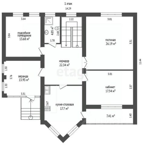 -2-й этаж: каминный зал, 3 спальни, кабинет, с/узел, балкон.