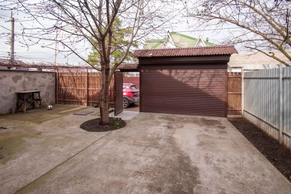 6 соток, ровный участок, посажены плодовые деревья и кустарники. Дом двухэтажный, площадью 94 кв. м; в 5 минутах пешком — магазин продуктов; остановка автобуса — 5 минут ходьбы, связь с городом регулярная; рядом роща, в 2 км — Ростовское море. Документы все в порядке, один взрослый собственник, без обременений.