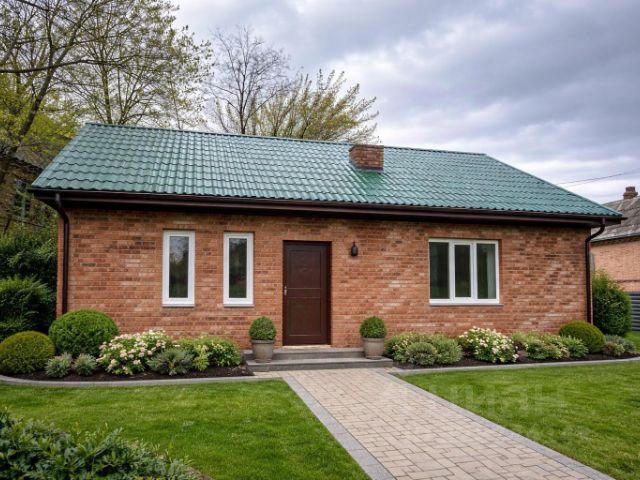 Материал стен кирпич, толщиной 2шт.,перекрытия- бетонные. К дому есть терраса, площадью 14,2м.кв. Кровля мягкая- Catepal, перекрыт в 2017 году. Двор вымощен тротуарной плиткой, благоустроен зелёными насаждениями.