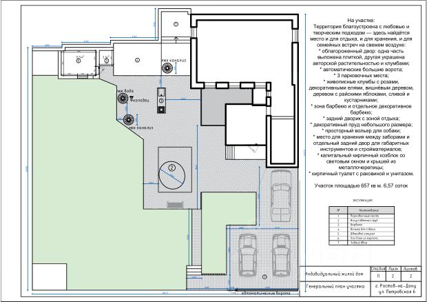 Сам двор: 7 соток очень зеленый, посажены многолетние ели, елки, березы и др. растения. Есть оборудованная мангальная зона, уличные качели. на летнее время устанавливается уличная беседка с мебелью. На территории двора есть возможность расположить до 4 автомобилей.