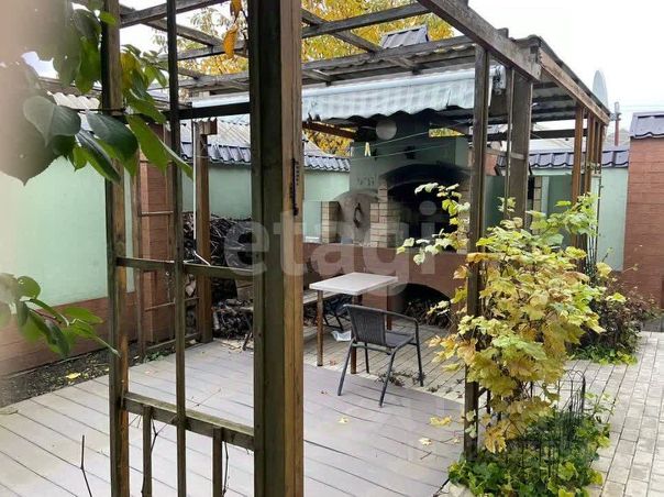 На участке в 6 соток расположен дом в два этажа, отдельно стоящее одноэтажное строение, включающее гараж площадью 41,6 кв.м. на два автомобиля, хозблок - баня дровяная, отделанная липой площадью 20,2 кв.м., вольер для собаки, мангальная зона с перголой, и уже посаженным виноградом, для отдыха и общения с гостями, фонтан с водопадом. Хозблок отапливается от общего отопления дома.