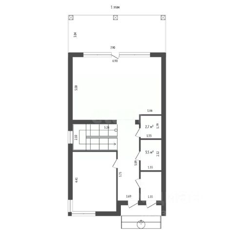 Первый этаж: кухня-гостинная 40 кв.м с выходом на терассу, спальня 14 кв.м, просторный хол 13 кв.м, гостевой санузел с душевой 5,5 кв.м, котельная 4 кв.м, гардеробная 4 кв.м, кладовка 3 кв.мI