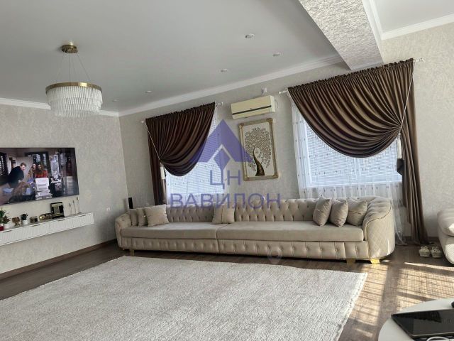 1 спальня с натяжным потолком и 4 точечными светильниками с синей подсветкой (выключатель 2х клавишный работает на две зоны); коридор; ванная комната с большой угловой ванной, душевая система с тропическим душем IDDIS с термостатом (вода температуру не меняет), унитаз с инсталляцией, большая подвесная тумба со столешницей из керамогранита (80см) и двумя ящиками с доводчиками, накладная раковина (чаша), вытяжка электрическая принудительная от отдельного выключателя, потолок натяжной с тремя точечными светильниками; котельная с насосами, стиральной машиной и котлом Navien; большая кухня-гостиная с выходом на террасу, кухня IKEA с фурнитурой (доводчиками) BLUM, место для встроенной микроволновки, духового шкафа и посудомоечной машины.