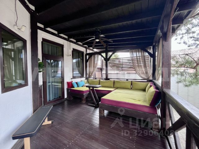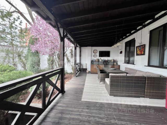 Благоустроенная веранда 50,4 кв.м, с прекрасным видом на ландшафтный дизайн двора, Веранда разделена на две зоны: 1 - для приготовления и приёма пищи, 2 — отдыха и релакса.