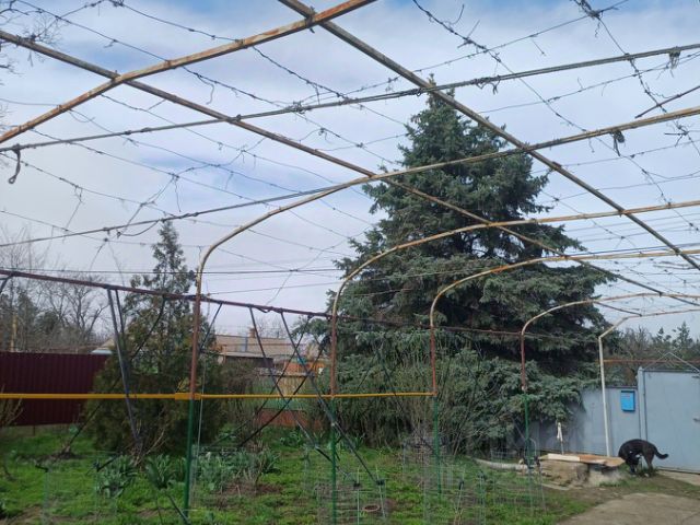 На участке 30 плодовых деревьев и кустарников: вишня, слива, черешня, орехи, айва, яблони ,смородина ,малина, виноград 7 сортов , хвойные : голубые ели ,пихты, можжевельники , альпийская горка ,два участочка с красивейшими розами на каждом по 8 кустов