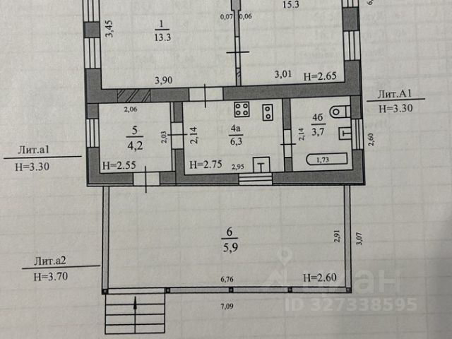 3 просторные комнаты (общая площадь — 65 м²)