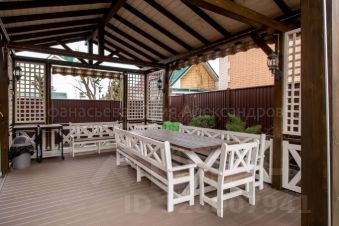 Высокий плитный фундамент под всем домом, включая террасу дает возможность увеличения жилой площади путем возведения дополнительных этажей или остекления самой террасы.