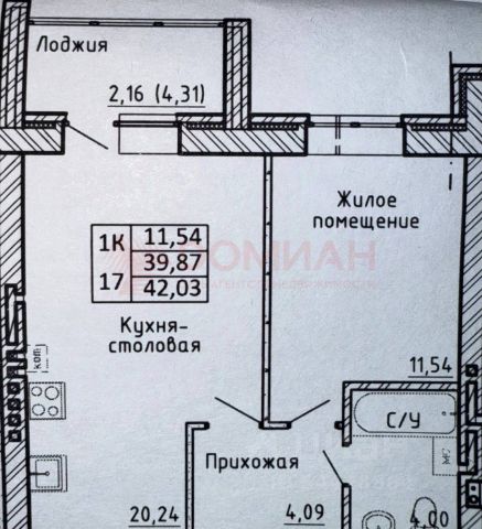 - Общая площадь: 42 м²