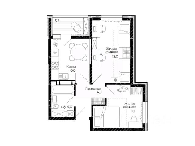 - Лоджия — 2,16 м², можно использовать как зону отдыха/кабинет