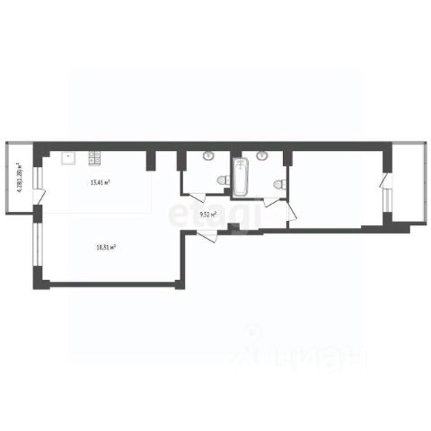 Лоджия — 1,663,31 м (5,5 м²)