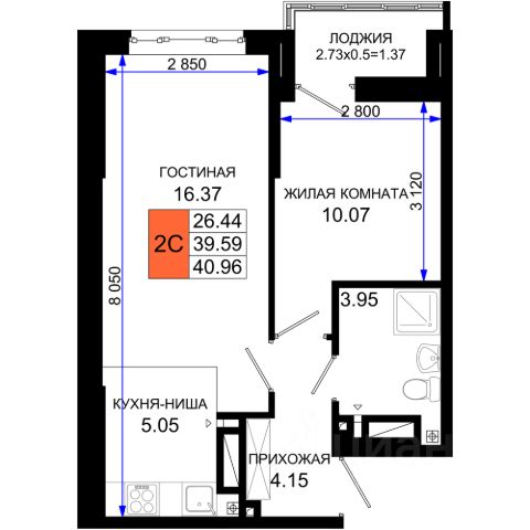 Двухкомнатная квартира площадью 53,7 кв.м расположена на 15 этаже современного жилого комплекса.