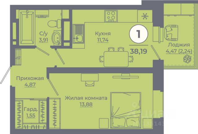 • подходит как для семьи благодаря площади и инфраструктуре, так и под инвестицию — комнаты изолированные, повышенный спрос аренды вам обеспечен;