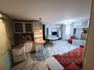 В комнате - студии установлена электрическая плита, большой двухкамерный холодильник с отдельным выдвижным ящиком для напитков (встроен в кухню и почти незаметен), диван,