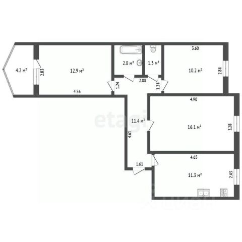 • ✅ Объект наибольшей площади: 92,6 м²