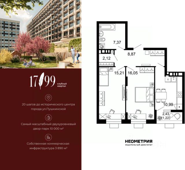 Ремонт в подарок при покупке любой квартиры! Представьте себе тихое место, где каждый ваш день начинается с пробуждения под нежное журчание реки и пение птиц. Жилой комплекс "Ботаника" — это ваш личный оазис, находясь в котором вы почувствуете настоящее единение с природой. Расположенный в живописном Ленинском районе Ростова-на-Дону, ЖК "Ботаника" — это новый проект комфорт-класса, сочетающий современные технологии и эко-стиль. Первая очередь включает 4 разновысотных корпуса (1725 этажей) на территории площадью 12 га, где всё продумано для комфортной и безопасной жизни. Внутри комплекса будет работать дошкольное образовательное учреждение , а всё необходимое — магазины, кафе, сервисы — вы сможете купить в коммерческих помещениях на первых этажах. Современная архитектура в белых и серых тонах привлекает с первого взгляда. Панорамное остекление наполняет квартиры светом, а корзины для кондиционеров на фасадах сохраняют эстетику фасадов. На цокольных этажах — кладовые , в подъездах — колясочные , а стильные лобби с зонами отдыха, гостевыми туалетами и лапомойками для собак создают атмосферу уюта и заботы. Территория комплекса полностью закрыта от машин и благоустроена: зелёные газоны, деревья, детские и спортивные площадки — всё, чтобы вы и ваша семья жили в гармонии с природой и собой. "Ботаника" — это не просто дом. Это новый образ жизни. Успейте приобрести квартиру с ремонтом — пока акция действует!