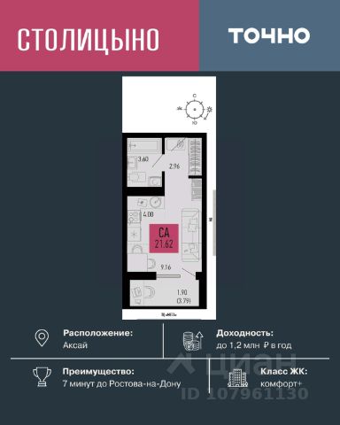 Литер 3.1, 11 этаж, 282. Микрорайон "Придонье" - прекрасная возможность жить в спокойном, зеленом и комфортном месте, всего в 7 минутах езды от Ростова-на-Дону. Небольшой и уютный Аксай создан именно для того, чтобы остановиться, провести время с семьей и отдохнуть от столичного ритма, при этом все возможности мегаполиса остаются под рукой. Квартира находится в современном микрорайоне с развитой инфраструктурой. Идеальный вариант для тех, кто ищет гармонию между тишиной, пространством для жизни и близостью к большому городу. Звоните для всех деталей и просмотра. Вся необходимая инфраструктура в пешей доступности Продуманное содержание Просторные дворы Безбарьерная среда Все для детей всех возрастов Школа на 1 810 мест Два детских сада, общая вместимость 770 мест Две Поликлиники Пожарное депо на 6 машин Опорный пункт полиции Станция скорой помощи на 2 бригады Бульвар Летний кинотеатр Зона для настольных игр Тропа здоровья Вело-беговая дорожка Воркаут зоны для взрослых и детей Зоны отдыха и релакса Тихие зоны с качелями и навесами Площадки для выгула собак + лапомойки Подземный и наземный паркинг Зарядные станции для электромобилей Видеонаблюдение Умная система контроля посетителей Современные умные домофоны Приобрести квартиру можно одним из способов: -субсидированная семейная ипотека от 3,5 % на весь срок -рассрочка -оплата наличными -дистанционная покупка Позвоните сейчас и забронируйте квартиру со скидкой!