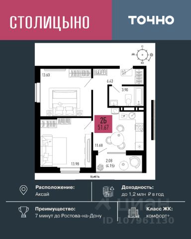 Литер 3.2, 12 этаж, 88. Микрорайон "Придонье" - прекрасная возможность жить в спокойном, зеленом и комфортном месте, всего в 7 минутах езды от Ростова-на-Дону. Небольшой и уютный Аксай создан именно для того, чтобы остановиться, провести время с семьей и отдохнуть от столичного ритма, при этом все возможности мегаполиса остаются под рукой. Квартира находится в современном микрорайоне с развитой инфраструктурой. Идеальный вариант для тех, кто ищет гармонию между тишиной, пространством для жизни и близостью к большому городу. Звоните для всех деталей и просмотра. Вся необходимая инфраструктура в пешей доступности Продуманное содержание Просторные дворы Безбарьерная среда Все для детей всех возрастов Школа на 1 810 мест Два детских сада, общая вместимость 770 мест Две Поликлиники Пожарное депо на 6 машин Опорный пункт полиции Станция скорой помощи на 2 бригады Бульвар Летний кинотеатр Зона для настольных игр Тропа здоровья Вело-беговая дорожка Воркаут зоны для взрослых и детей Зоны отдыха и релакса Тихие зоны с качелями и навесами Площадки для выгула собак + лапомойки Подземный и наземный паркинг Зарядные станции для электромобилей Видеонаблюдение Умная система контроля посетителей Современные умные домофоны Приобрести квартиру можно одним из способов: -субсидированная семейная ипотека от 3,5 % на весь срок -рассрочка -оплата наличными -дистанционная покупка Позвоните сейчас и забронируйте квартиру со скидкой!