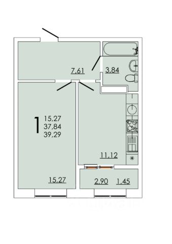 Вместительный санузел позволит установить все необходимое: большую ванную/душ, биде, инсталляцию, умывальник, стиральную и сушильную машины.