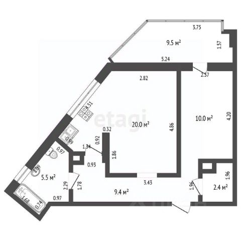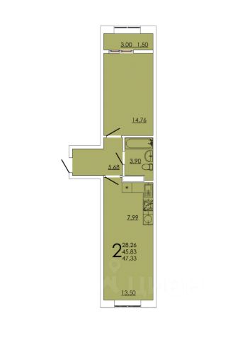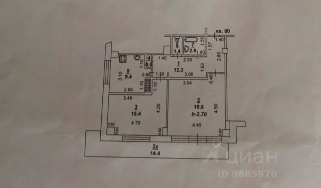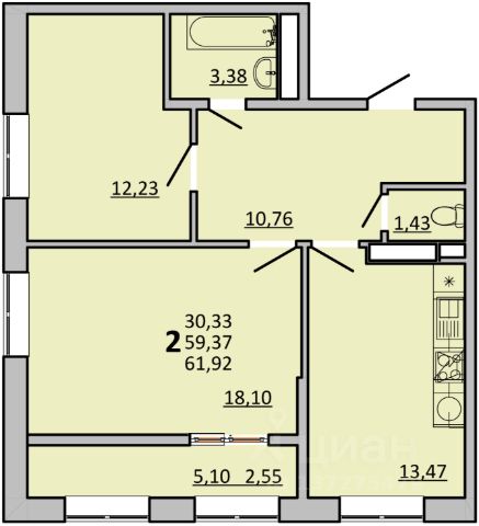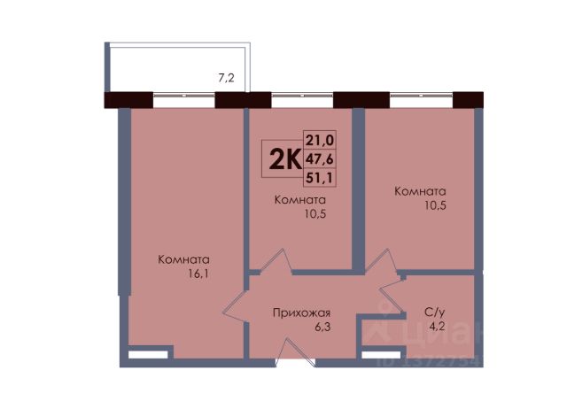 Есть 2 балкона, на один выход из кухни, на второй — из спальни.