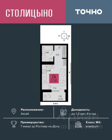 Литер 3.3, 14 этаж, 949. Микрорайон "Придонье" - прекрасная возможность жить в спокойном, зеленом и комфортном месте, всего в 7 минутах езды от Ростова-на-Дону. Небольшой и уютный Аксай создан именно для того, чтобы остановиться, провести время с семьей и отдохнуть от столичного ритма, при этом все возможности мегаполиса остаются под рукой. Квартира находится в современном микрорайоне с развитой инфраструктурой. Идеальный вариант для тех, кто ищет гармонию между тишиной, пространством для жизни и близостью к большому городу. Звоните для всех деталей и просмотра. Вся необходимая инфраструктура в пешей доступности Продуманное содержание Просторные дворы Безбарьерная среда Все для детей всех возрастов Школа на 1 810 мест Два детских сада, общая вместимость 770 мест Две Поликлиники Пожарное депо на 6 машин Опорный пункт полиции Станция скорой помощи на 2 бригады Бульвар Летний кинотеатр Зона для настольных игр Тропа здоровья Вело-беговая дорожка Воркаут зоны для взрослых и детей Зоны отдыха и релакса Тихие зоны с качелями и навесами Площадки для выгула собак + лапомойки Подземный и наземный паркинг Зарядные станции для электромобилей Видеонаблюдение Умная система контроля посетителей Современные умные домофоны Приобрести квартиру можно одним из способов: -субсидированная семейная ипотека от 3,5 % на весь срок -рассрочка -оплата наличными -дистанционная покупка Позвоните сейчас и забронируйте квартиру со скидкой!
