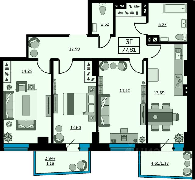 В продаже двухкомнатная квартира в новостройке. . Лучшее решение решение для жизни, под сдачу или для инвестиций. Данная планировка это двухкомнатная квартира евроформата и современное решение для тех, кто ценит функциональность пространства. Здесь есть всё для ваших идей и потребностей: универсальные по размеру комнаты, большая прихожая и собственный балкон. Наиболее выгодная цена на этапе строительства. Успейте забронировать квартиру напрямую от застройщика. В сотрудничестве с ведущими банками России предлагаем вам выгодные условия при приобретении квартиры в ипотеку в жилом комплексе: Первоначальный взнос: от 20% (обязательно). Процентные ставки: от 6% годовых (условия действуют по программе "Семейная ипотека"). Дом сдан СУПЕР ПРЕДЛОЖЕНИЕ на сданные дома: без платежа до 20.12.2026 г.; первоначальный взнос составляет всего 25%; остаток суммы необходимо внести в течение месяца после окончания льготного периода. Только сейчас, при покупке квартиры ставка 0,11% на первые 12 месяцев! Жилой комплекс "Сердце Ростова 2", предлагающий уникальный формат квартир с террасами и объединяющий всё необходимое для комфорта городской жизни. Включает девять многоэтажных домов, ТРЦ и детский сад. Расположен в Ворошиловском районе, по адресу, ул. Ларина, 45. - Монолитно-каркасная технология строительства. -Облицовка кирпич в соответствии с ГОСТом - Срок ввода в эксплуатацию III квартал 2025 года. - 9 литеров по 26 этажей. - 10 минут до центра города. - ТОПЖК: 2 место в номинации "ЛучшийЖК в Ростовской области". - Рядом ТЦ "Горизонт", вЖК собственный ТЦ. - В наличии квартиры с террасами. - Закрытая территория, собственный детсад. - Продуманные зоны отдыха вЖК. - Рядом 10 школ, 12 детсадов, 2 вуза. О застройщике Московская Строительная Компания ТОП-застройщик по объему текущего строительства жилья и ввода в эксплуатацию в Ростовской области. На рынке с 2012 года, за это время возведено 538 000 кв.м. жилья. На этапе строительства 325 000 кв.м. в 7 жилых комплексах г. Ростова-на-Дону. ГК "МСК" работает в соответствии с 214-ФЗ. Способ оплаты При покупке квартиры от застройщика "МСК" Вы можете использовать все популярные сейчас способы: 100% оплата. Когда у Вас есть вся сумма в наличии. Рассрочка (подробные условия и размеры первоначального взноса уточняйте у менеджеров застройщика). Первоначальный взнос и график платежей определяем индивидуально. Ипотека. Сотрудничаем с ведущими банками России и поможем подобрать выгодную ипотечную программу. Материнский капитал или сертификат АЖП. Можно использовать на участие в долевом строительстве или на погашение ипотеки. Если у Вас возникли вопросы, позвоните или напишите нам. Менеджер все подробно расскажет и поберет для Вас лучший вариант. Бронирование квартиры совершенно бесплатно! Вам ответят в течении 30 минут. Для агентств недвижимости: Если вы хотите стать нашим партнёром или уже являетесь им, вам необходимо позвонить по номеру тел