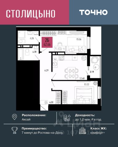 Литер 3.3, 16 этаж, 689. Микрорайон "Придонье" - прекрасная возможность жить в спокойном, зеленом и комфортном месте, всего в 7 минутах езды от Ростова-на-Дону. Небольшой и уютный Аксай создан именно для того, чтобы остановиться, провести время с семьей и отдохнуть от столичного ритма, при этом все возможности мегаполиса остаются под рукой. Квартира находится в современном микрорайоне с развитой инфраструктурой. Идеальный вариант для тех, кто ищет гармонию между тишиной, пространством для жизни и близостью к большому городу. Звоните для всех деталей и просмотра. Вся необходимая инфраструктура в пешей доступности Продуманное содержание Просторные дворы Безбарьерная среда Все для детей всех возрастов Школа на 1 810 мест Два детских сада, общая вместимость 770 мест Две Поликлиники Пожарное депо на 6 машин Опорный пункт полиции Станция скорой помощи на 2 бригады Бульвар Летний кинотеатр Зона для настольных игр Тропа здоровья Вело-беговая дорожка Воркаут зоны для взрослых и детей Зоны отдыха и релакса Тихие зоны с качелями и навесами Площадки для выгула собак + лапомойки Подземный и наземный паркинг Зарядные станции для электромобилей Видеонаблюдение Умная система контроля посетителей Современные умные домофоны Приобрести квартиру можно одним из способов: -субсидированная семейная ипотека от 3,5 % на весь срок -рассрочка -оплата наличными -дистанционная покупка Позвоните сейчас и забронируйте квартиру со скидкой!