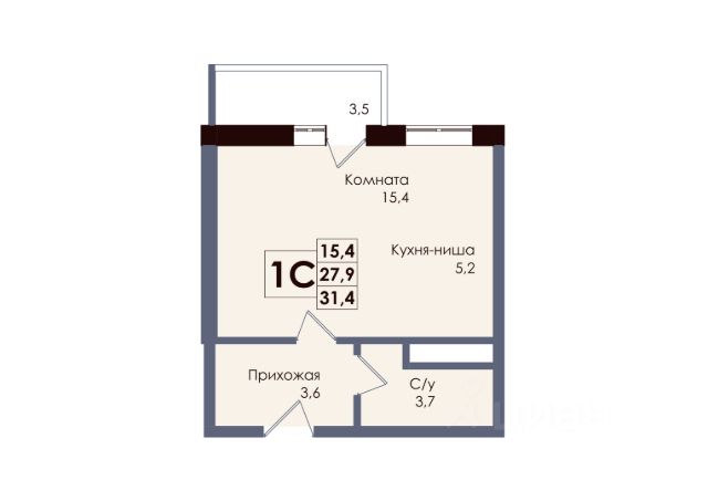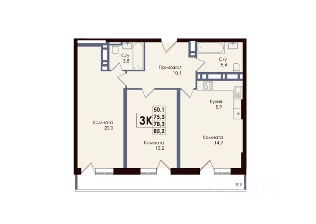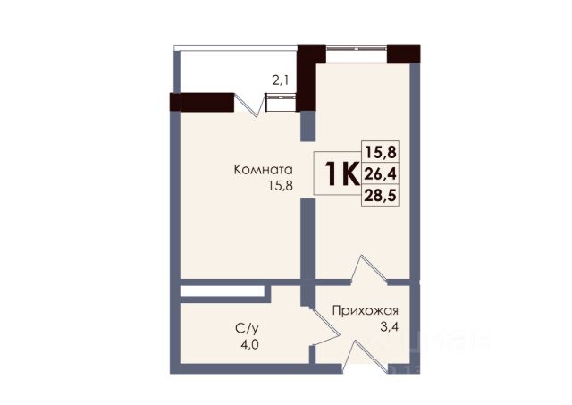 Есть 2 балкона, на один выход из кухни, на второй из спальни.