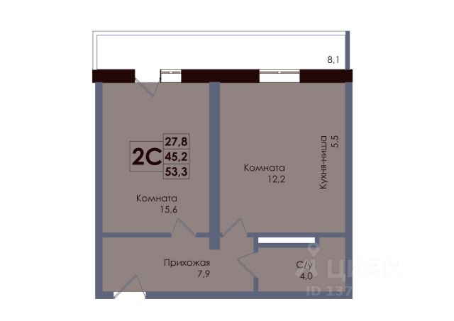 В продаже 2-к квартира в клубном доме "Вместе".