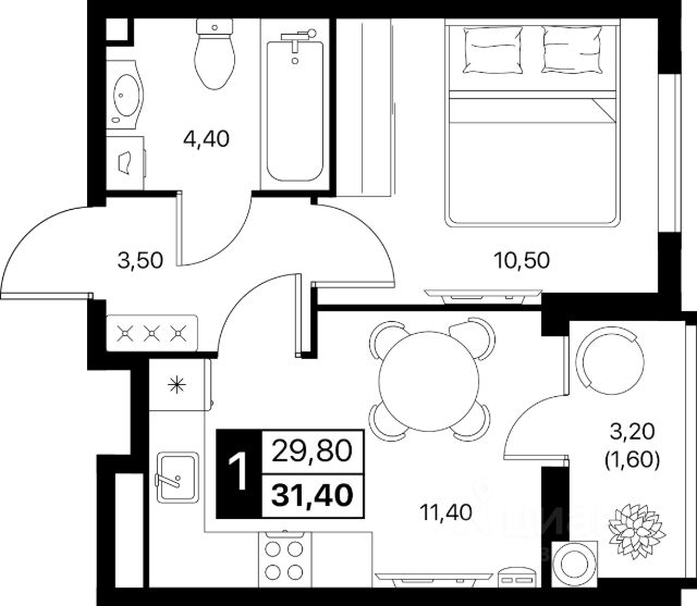 • ✅ Минимальная площадь: 29,9 м²