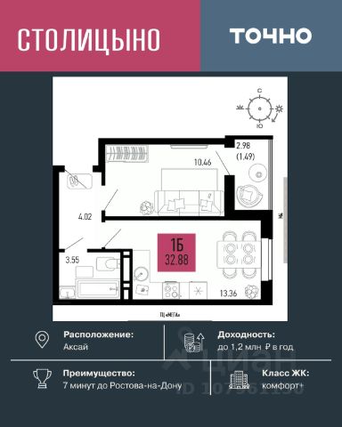 Литер 3.2, 9 этаж, 336. Микрорайон "Придонье" - прекрасная возможность жить в спокойном, зеленом и комфортном месте, всего в 7 минутах езды от Ростова-на-Дону. Небольшой и уютный Аксай создан именно для того, чтобы остановиться, провести время с семьей и отдохнуть от столичного ритма, при этом все возможности мегаполиса остаются под рукой. Квартира находится в современном микрорайоне с развитой инфраструктурой. Идеальный вариант для тех, кто ищет гармонию между тишиной, пространством для жизни и близостью к большому городу. Звоните для всех деталей и просмотра. Вся необходимая инфраструктура в пешей доступности Продуманное содержание Просторные дворы Безбарьерная среда Все для детей всех возрастов Школа на 1 810 мест Два детских сада, общая вместимость 770 мест Две Поликлиники Пожарное депо на 6 машин Опорный пункт полиции Станция скорой помощи на 2 бригады Бульвар Летний кинотеатр Зона для настольных игр Тропа здоровья Вело-беговая дорожка Воркаут зоны для взрослых и детей Зоны отдыха и релакса Тихие зоны с качелями и навесами Площадки для выгула собак + лапомойки Подземный и наземный паркинг Зарядные станции для электромобилей Видеонаблюдение Умная система контроля посетителей Современные умные домофоны Приобрести квартиру можно одним из способов: -субсидированная семейная ипотека от 3,5 % на весь срок -рассрочка -оплата наличными -дистанционная покупка Позвоните сейчас и забронируйте квартиру со скидкой!
