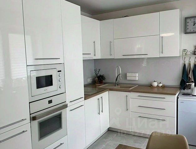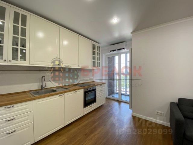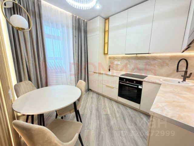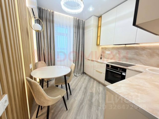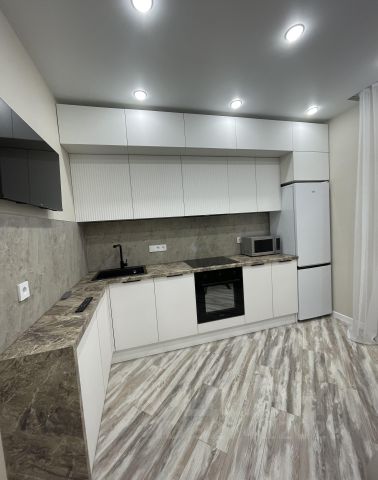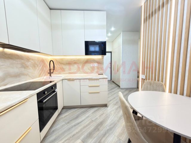 Кухня сделана на заказ, все шкафы с доводчиками, качественная бытовая техника ( варочная панель, духовой шкаф, вытяжка, холодильник). Качественная обеденная группа( стол раскладывается). Установлена сплит-система инверторная, раскладной диван. На лоджии ламинат, н, вместительный шкаф для хранения. С лоджии панорамный вид на городской пейзаж, центр города и стадион. В прихожей вместительный шкаф-купе, так же установлена обувница. Ванная комната совмещенная с с/у, выложена керамогранитом, установлена стиральная машина, шкаф для бытовых принадлежностей.