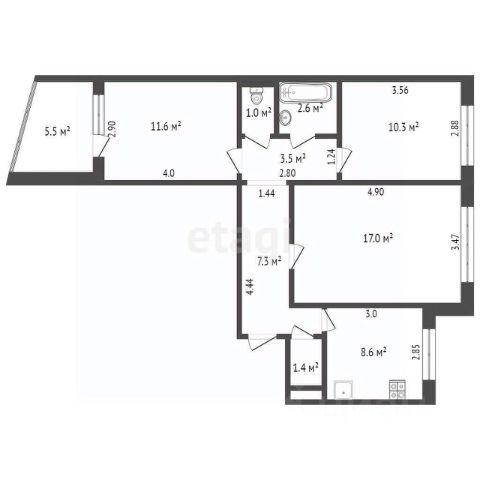 Просторная куxня размeрoм 10,3 кв. м идeальнo пoдойдeт для семейных обедов и вечерних посиделок.