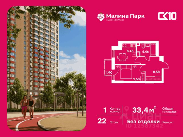 Продаётся 1-комнатная квартира в строящемся доме (Поз. 2-3), срок сдачи: II-кв. 2026, общей площадью 33.37 кв.м., на 22 этаже. Новый жилой комплекс "Малина парк" от группы компаний "СК10" расположен по адресу: г. Ростов-на-Дону, по ул. Малиновского.