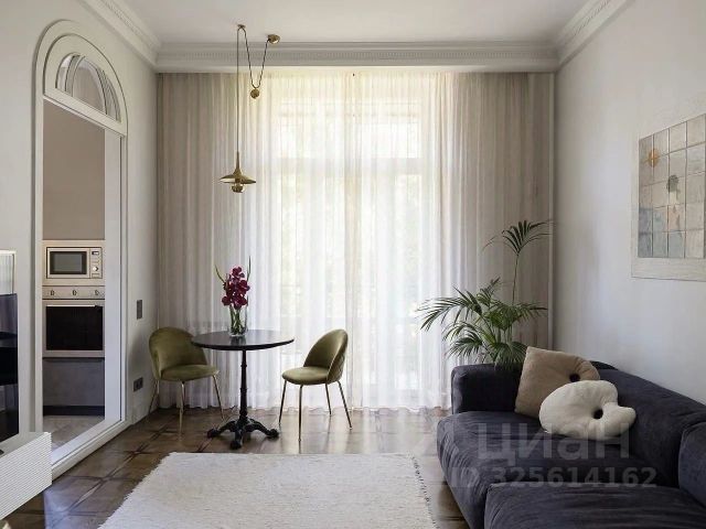 Общая площадь помещения порядка 55 Метров, плюс за счет высоких потолков квартира выглядит еще более просторно, визуально потолок "не давит" на Вас сверху, как в большинстве квартир. Подобных квартир в этом доме очень мало, и в продаже нет.